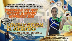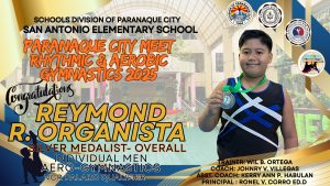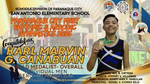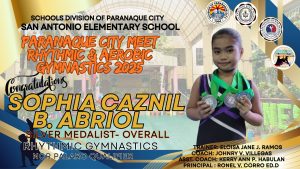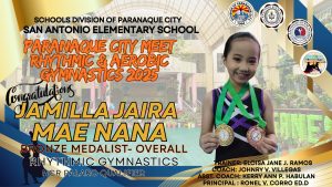 In Aerobic Gymnastics,SAnES dominated the Individual Male category with Karl Marvin G. Canabuan winning gold and Reymond B. Organista securing silver, both earning qualification for the NCR Palaro. Individual Female category, Princess Dolly Ramos claimed silver, while Samantha Elize Salvacion and Lovely Reign Herrero earned Bronze, also qualifying for NCR Palaro.