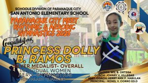 For the Overall Category, SAnES continued its winning streak with Alexis Zayne G. Ronquillo taking Gold, Sophia Caznil B. Abriol earning Silver, and Jamila Jaira Mae Nana claiming Bronze, all qualifying for the NCR Palaro.