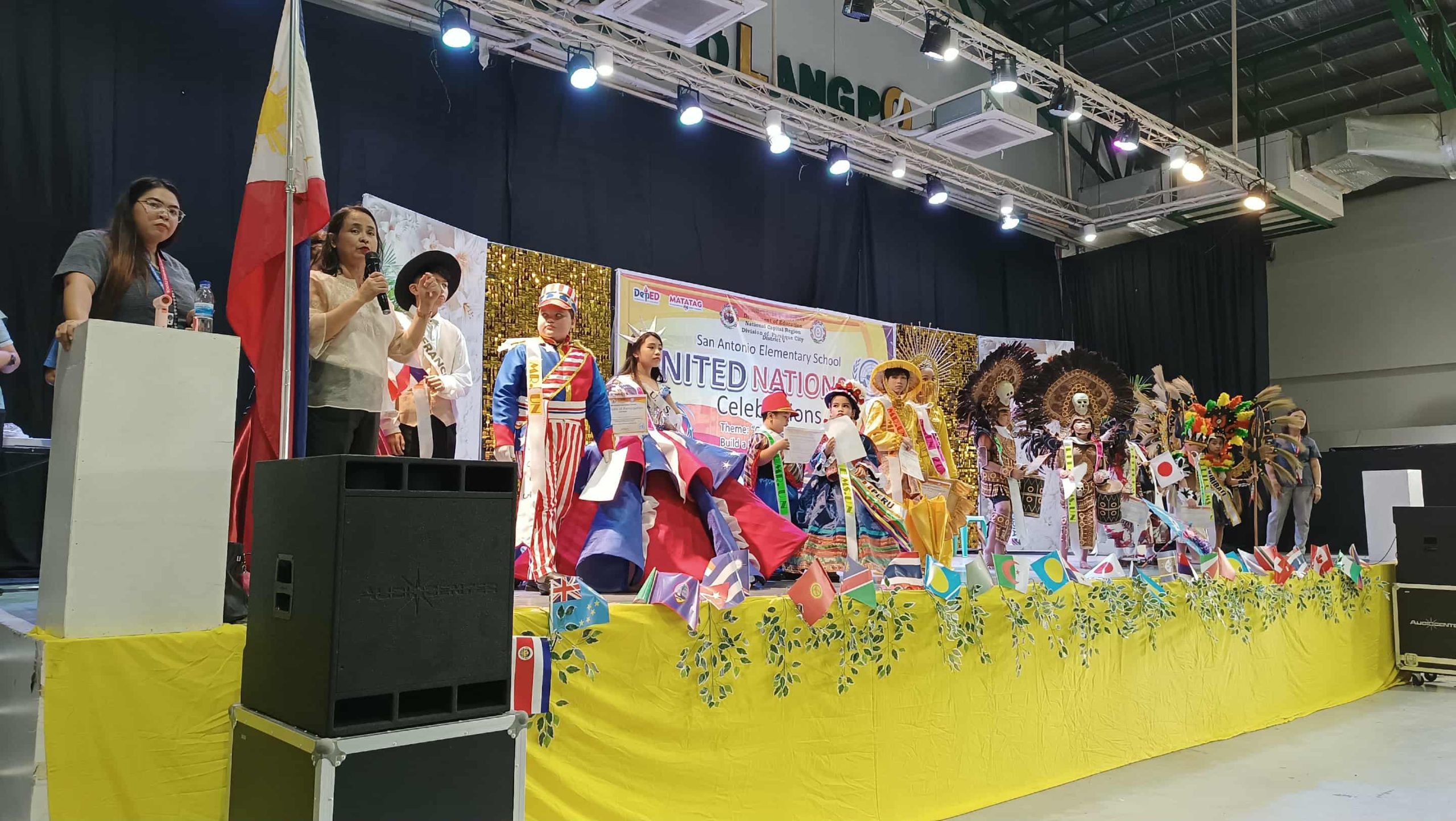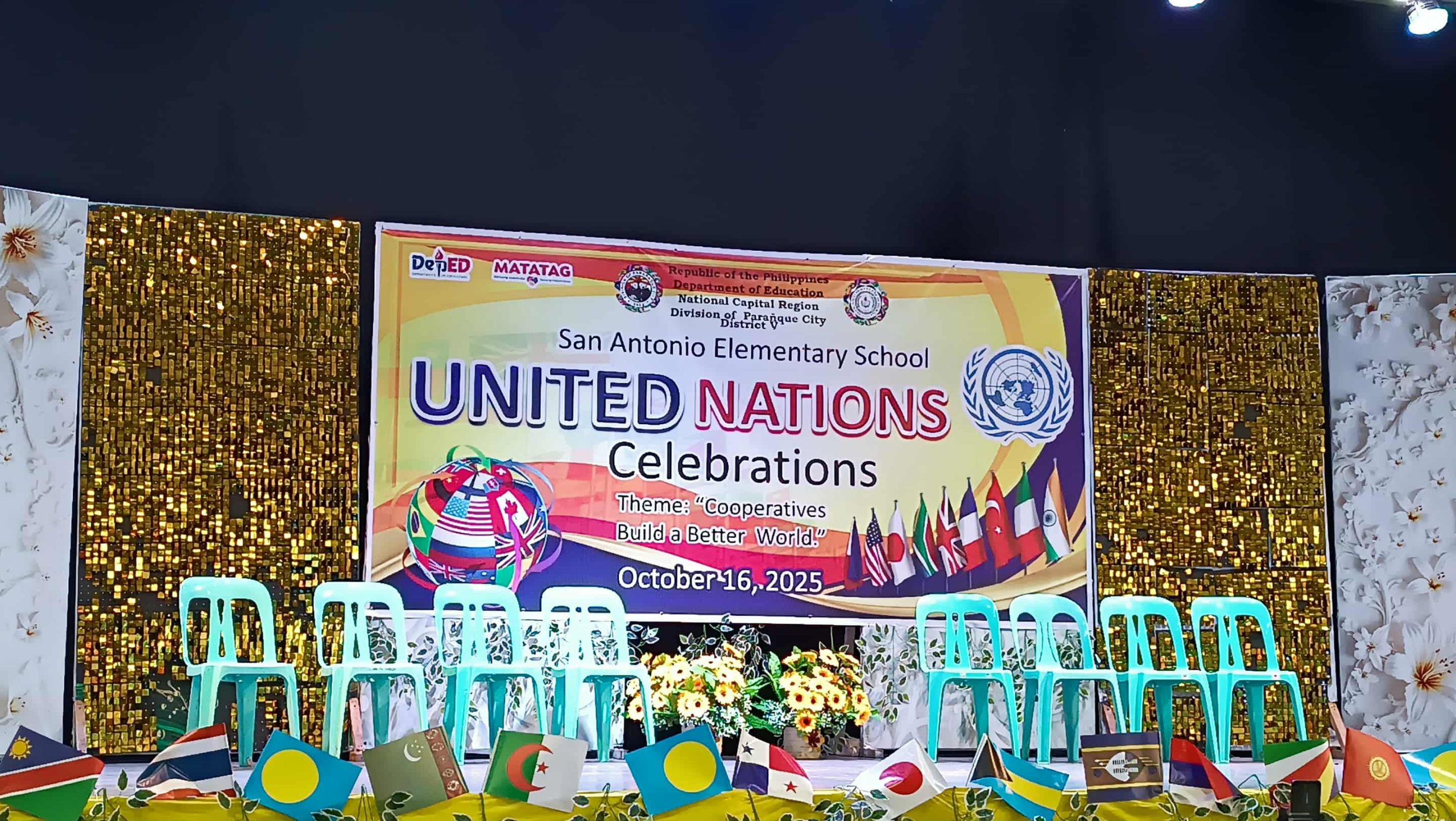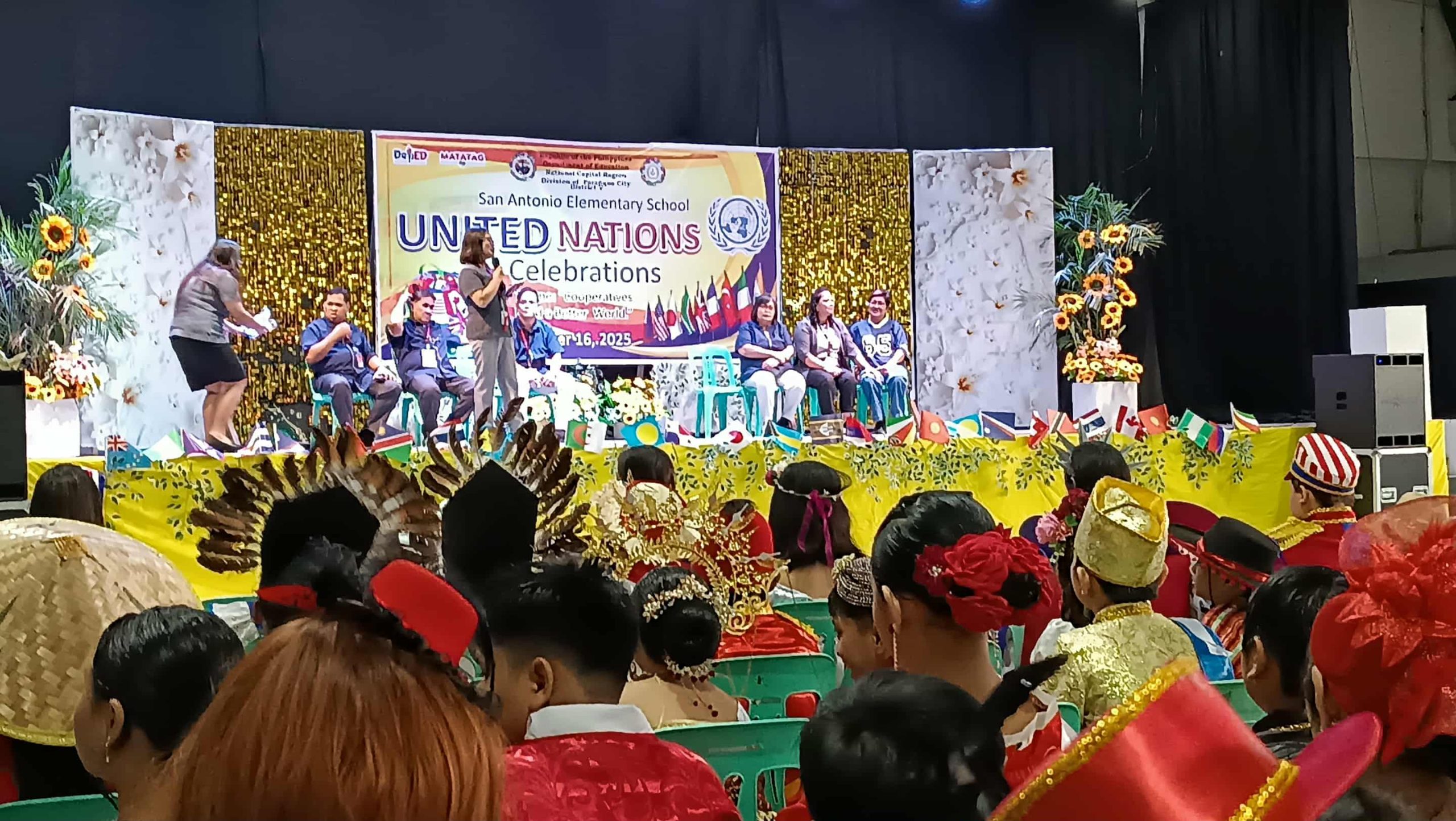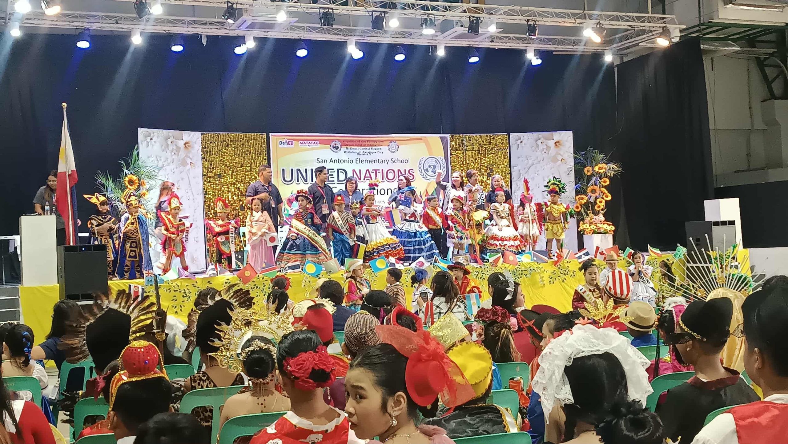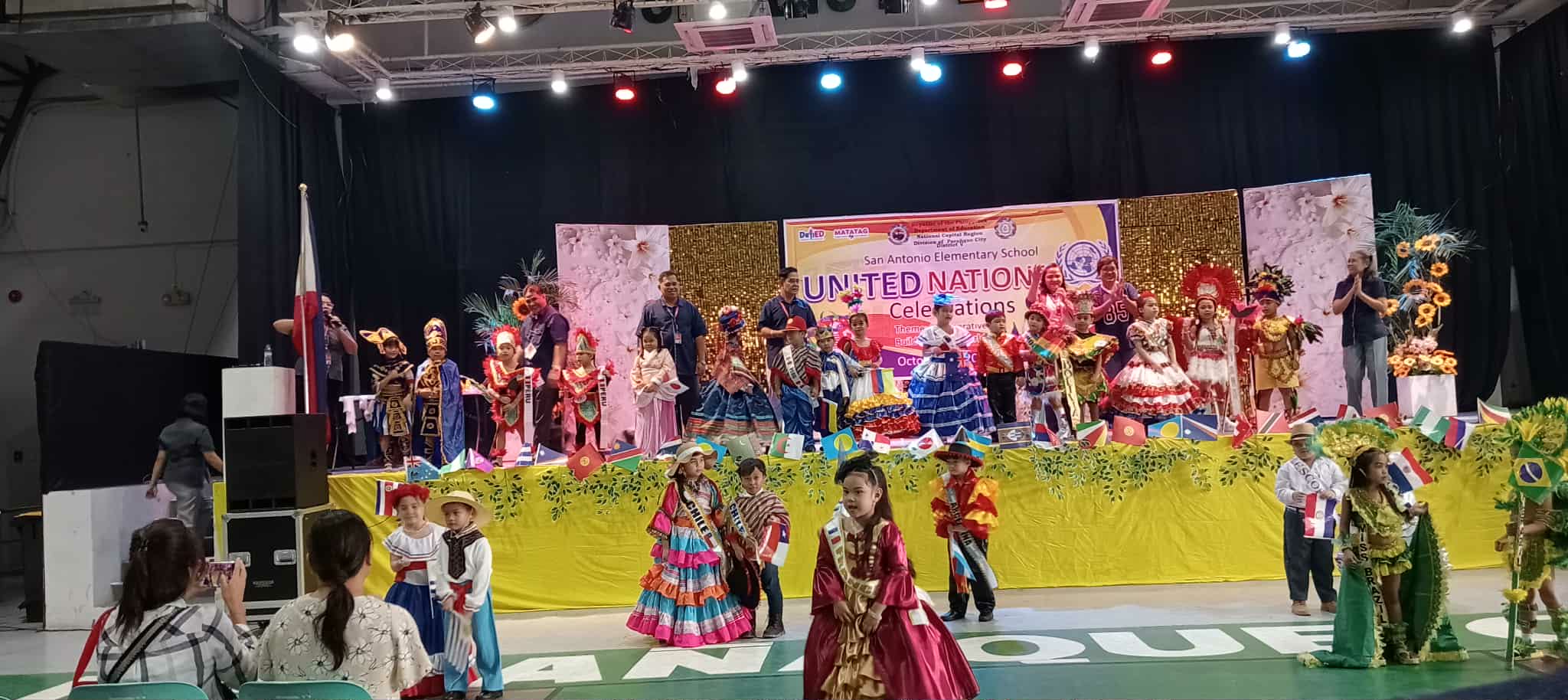 San Antonio Elementary School successfully held its United Nations Celebration on October 16, 2025, at the Parañaque Sports Complex. The activity originally set for an earlier date, was rescheduled to this day due to the availability of the venue. The celebration aimed to promote global awareness, unity, and appreciation of cultural diversity among learners, in line with the United Nations’ vision of fostering peace and cooperation among nations. It was planned to have a parade but it did not proceed due to bad weather instead they gave time to the representatives to walk inside the city gymnasium.